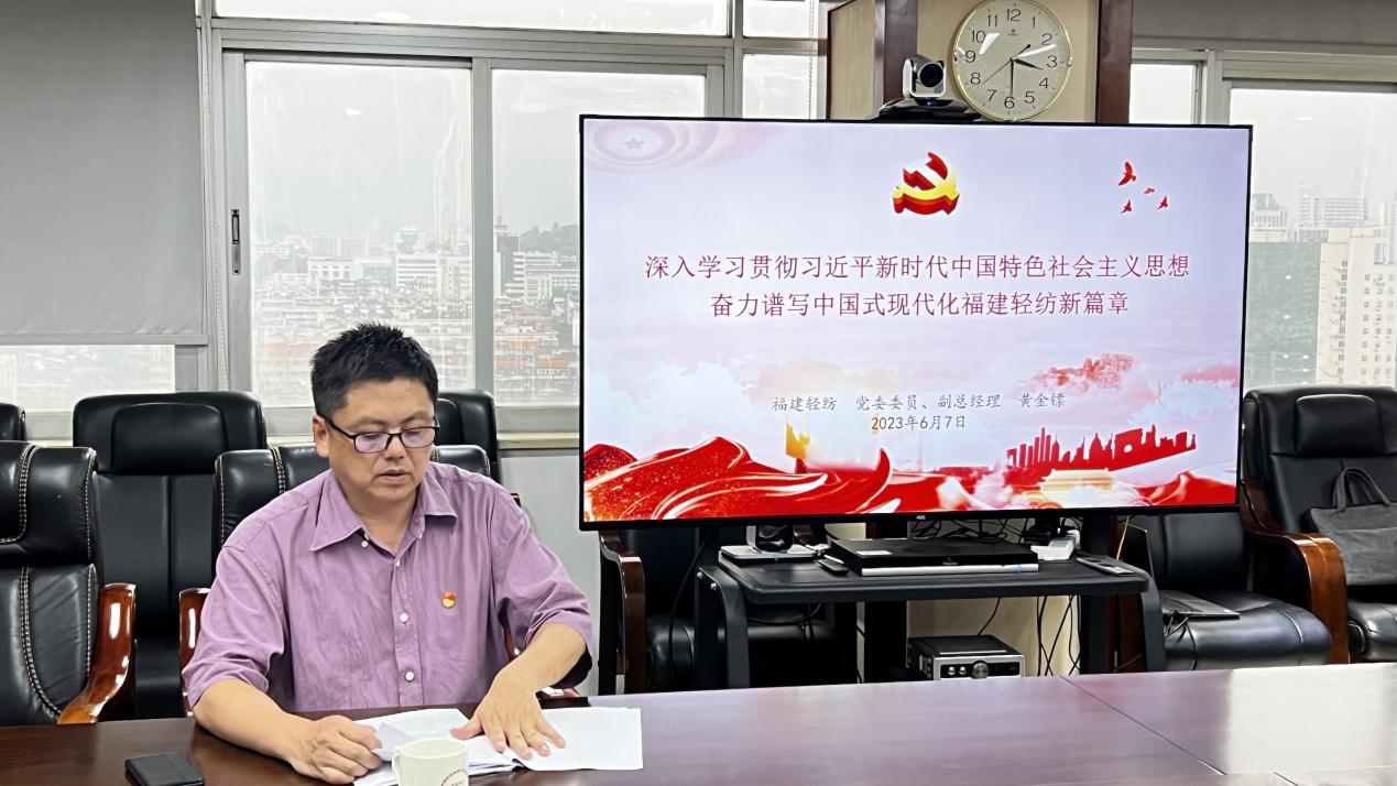 6月7日下午,福建輕紡黨委委員、副總經(jīng)理黃金鏢以“深入學習貫徹習近平新時代中國特色社會主義思想,推進福建輕紡高質(zhì)量發(fā)展,為奮力譜寫中國式現(xiàn)代化福建篇章貢獻輕紡力量”為主題,從“深化學、內(nèi)化悟、轉(zhuǎn)化干”三個維度,為機關第五支部全體黨員上了一堂生動又深刻的主題教育專題黨課。
