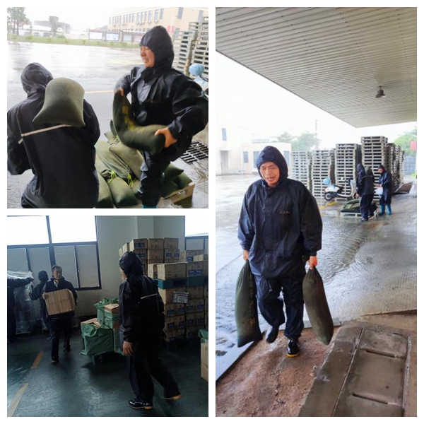 (圖為晶秀輕化黨支部帶領(lǐng)突擊隊準(zhǔn)備防御第5號臺風(fēng)“杜蘇芮”物資等)
