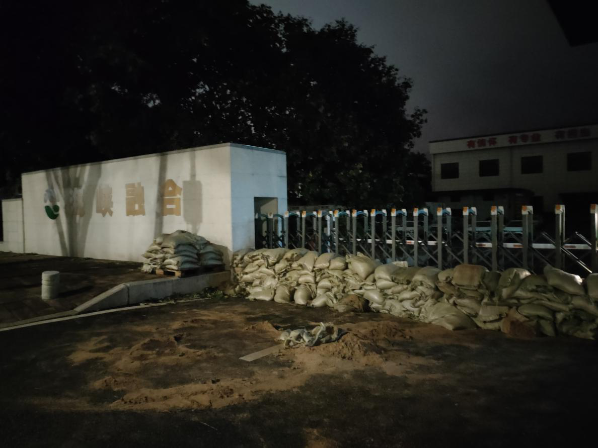 (圖為晶海輕化搶險黨員突擊隊緊急堆疊沙袋堵漏,并轉(zhuǎn)移包裝物)