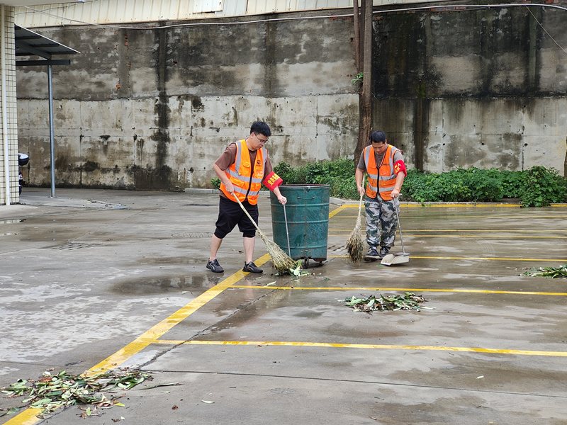 (圖為廈門融合突擊隊清掃臺風(fēng)席卷后的園區(qū))