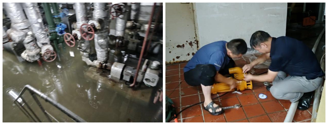 (泵房積水,搶救被水浸泡的水泵并抽水排出)