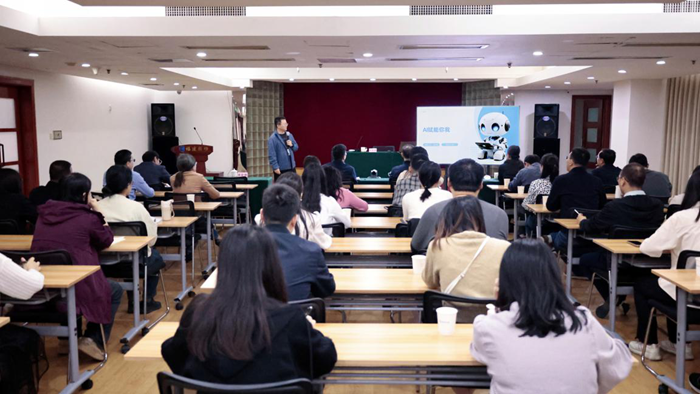 4月10日上午,福建輕紡舉辦2025年度第二期“輕紡大講堂”。本次活動(dòng)以“AI賦能你我”為主題,特邀福建融合數(shù)智科技有限公司總經(jīng)理池陳清作專題講座。講座通過線上線下相結(jié)合的方式開展,公司領(lǐng)導(dǎo)班子成員、中層管理人員、權(quán)屬企業(yè)領(lǐng)導(dǎo)及公司青年干部共計(jì)310人參加。