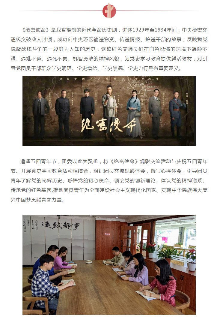 福建輕紡團(tuán)委組織召開(kāi)“迎五四·學(xué)黨史”之《絕密使命》觀影交流活動(dòng)(一)