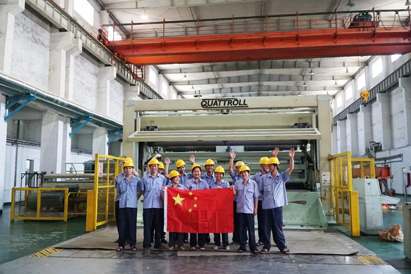 圖為福建省青山紙業(yè)股份有限公司3號(hào)機(jī)職工與國(guó)旗合影