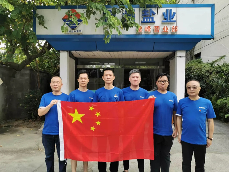 圖為福州鹽業(yè)員工與國(guó)旗合影