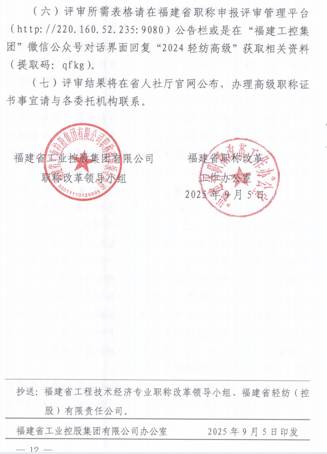 福建省工業(yè)控股集團職稱改革領導小組福建省職稱改革工作辦公室文件-關于開展福建省輕紡專業(yè)高級工程師職稱評審工作的通知.pdf