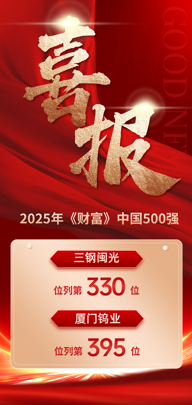 7月22日,2025年《財(cái)富》中國500強(qiáng)排行榜揭曉,省工控集團(tuán)權(quán)屬企業(yè)三鋼閩光、廈門鎢業(yè)上榜。