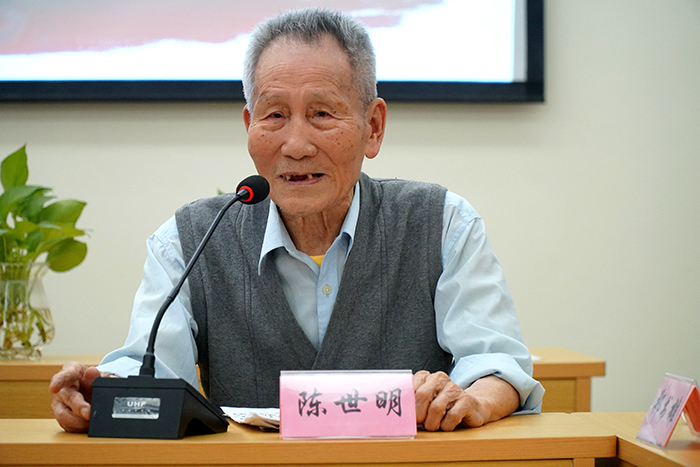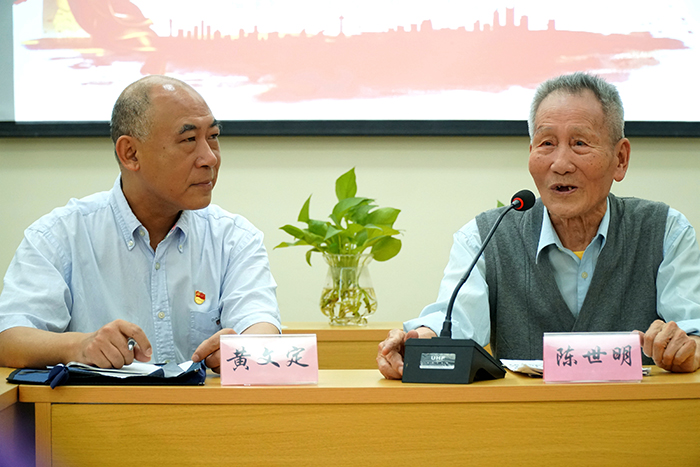 講座中,95歲高齡的陳老講述了革命戰(zhàn)爭年代,福州解放的歷程及自己一生幾經(jīng)生死考驗(yàn)卻從未言棄的故事。因?yàn)樾闹谐錆M著“革命理想高于天”的豪邁情懷,因?yàn)槔硐胄拍顖?jiān)如磐石,入黨71年,陳世明同志始終不忘初心,牢記使命,把黨的事業(yè)當(dāng)作自己畢生的追求。這一堂生動(dòng)的革命歷史教育課,深深觸動(dòng)了在場所有人。