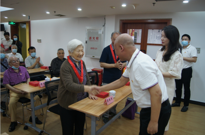 6月7日下午,福建輕紡舉行“光榮在黨50年”紀念章頒發(fā)儀式。 公司黨委書記、總經(jīng)理黃文定,黨委委員、副總經(jīng)理陳國樑,23位獲得“光榮在黨50年”紀念章老黨員代表、本部、工貿(mào)公司、輕工所黨務(wù)工作人員共30多人參加。
