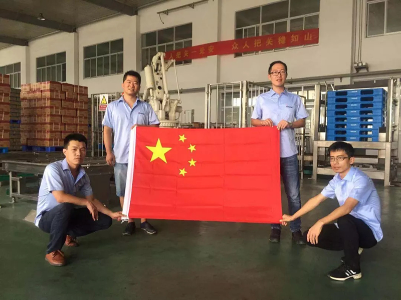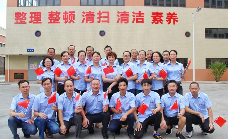 圖為福建省泉州晶海輕化有限公司員工與國(guó)旗合影