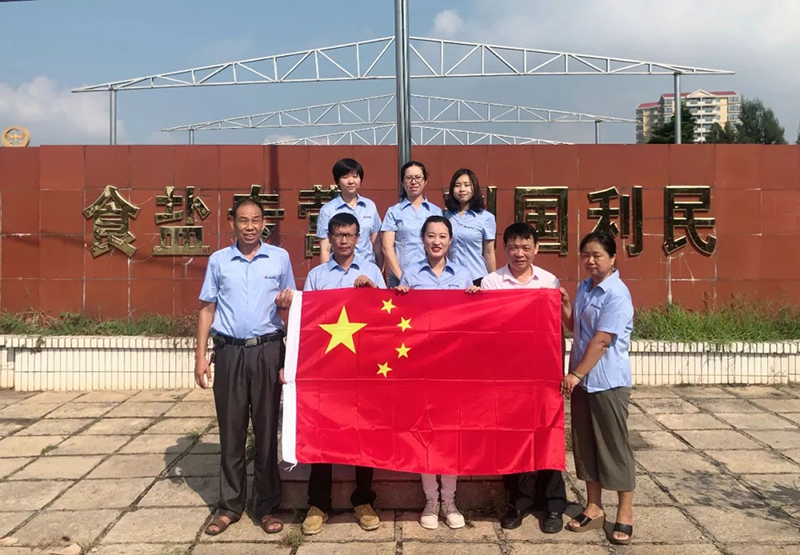 圖為福州鹽業(yè)員工與國(guó)旗合影