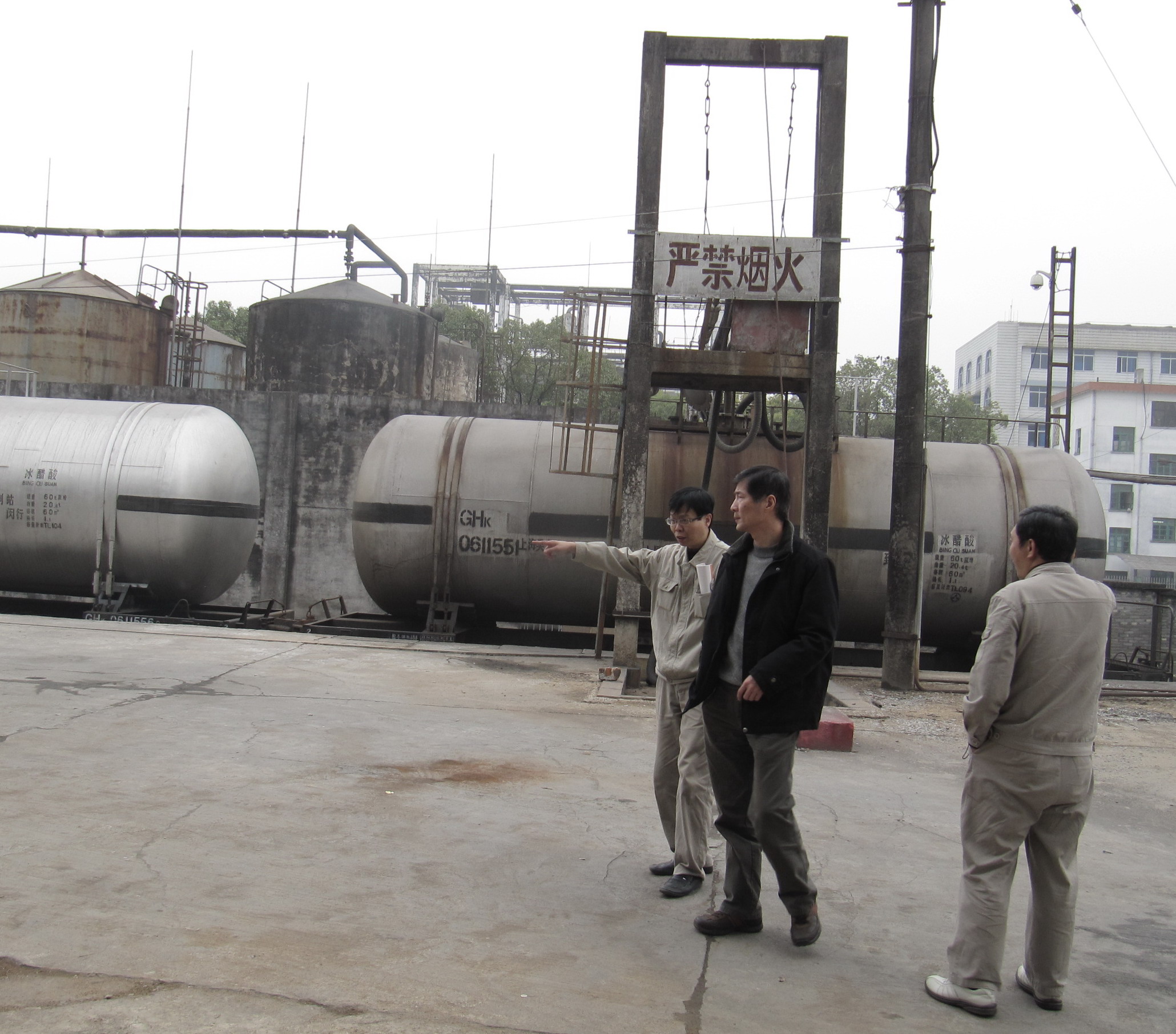 上圖為檢查組在紡織化纖集團(tuán)卸車平臺(tái)檢查整改情況