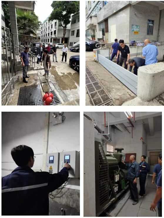 演練從消控中心值班人員發(fā)現(xiàn)地下室設(shè)備用房雨水倒灌開始,經(jīng)現(xiàn)場確認、逐級報告批準啟動Ⅲ級防汛預(yù)案,安全員組織人員搬運沙袋、啟用防汛擋板阻檔雨水進入地下室,電工檢查排水溝、配電室、發(fā)電機等重要設(shè)備設(shè)施,啟動抽水泵抽水,消控員密切關(guān)注大廈周邊情況,逐一檢驗應(yīng)急處置細節(jié)及各部門分工合作。