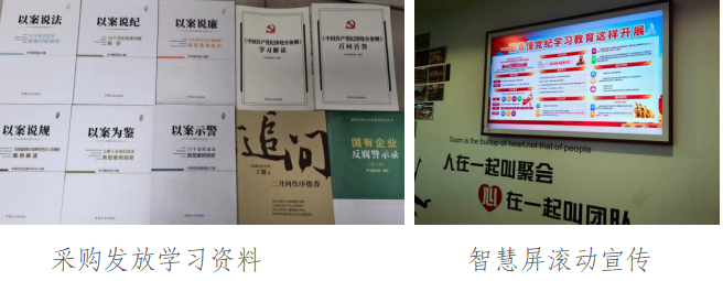 公司黨委第一時間召開黨委(擴大)會議,深入學(xué)習(xí)領(lǐng)會習(xí)近平總書記關(guān)于黨紀學(xué)習(xí)教育的重要講話重要指示精神,成立工作專班,研究部署公司黨紀學(xué)習(xí)教育工作。制定學(xué)習(xí)計劃,每月印發(fā)《學(xué)習(xí)和工作提示》,細化重點任務(wù),量化時間節(jié)點,清單化指導(dǎo),實行“每周一報一推進”,突出分類指導(dǎo)、靶向施策,聚焦新提任干部、年輕干部、關(guān)鍵崗位干部等重點人群,推動黨紀學(xué)習(xí)教育各項“規(guī)定動作”落實到位。在公司官網(wǎng)、微信公眾號、文化墻、黨建智慧屏開辟黨紀學(xué)習(xí)教育宣傳欄,充分運用好宣傳陣地,張貼黨紀學(xué)習(xí)教育宣傳掛圖10幅,發(fā)布、轉(zhuǎn)載相關(guān)訊息43篇,更新廉潔文化長廊26次,采購《追問》等廉潔讀本40冊,不斷提高黨紀學(xué)習(xí)教育質(zhì)效。