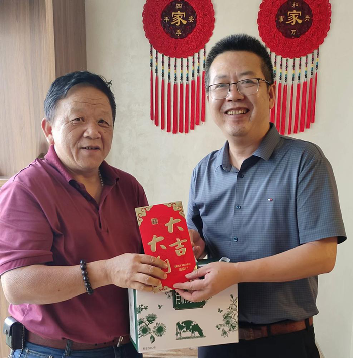(圖注:福建輕安黨委書記劉斌看望慰問(wèn)全省優(yōu)秀黨務(wù)工作者張明秋同志)