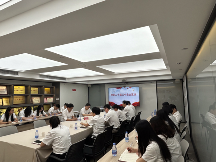 10月16日下午,福建輕紡黨委委員、副總經(jīng)理黃金鏢到輕紡設(shè)計(jì)院宣講黨的二十屆三中全會(huì)精神。福建輕紡黨建工作部主任、人力資源部副總經(jīng)理李亮、公司領(lǐng)導(dǎo)班子成員、二支部黨員等30余人參加活動(dòng)。