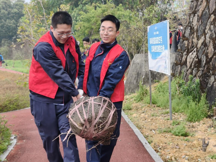 植樹(shù)現(xiàn)場(chǎng),公司領(lǐng)導(dǎo)與干部職工一起揮鍬鏟土、培土夯苗、澆水灌溉,大家熱情高漲,干勁十足,每一道工序都一絲不茍、默契配合。在大家的共同努力下,近40顆櫻花苗在廠區(qū)“安家落戶”,一顆顆新栽植的小樹(shù)昂然挺立,煥發(fā)出蓬勃生機(jī)與活力。